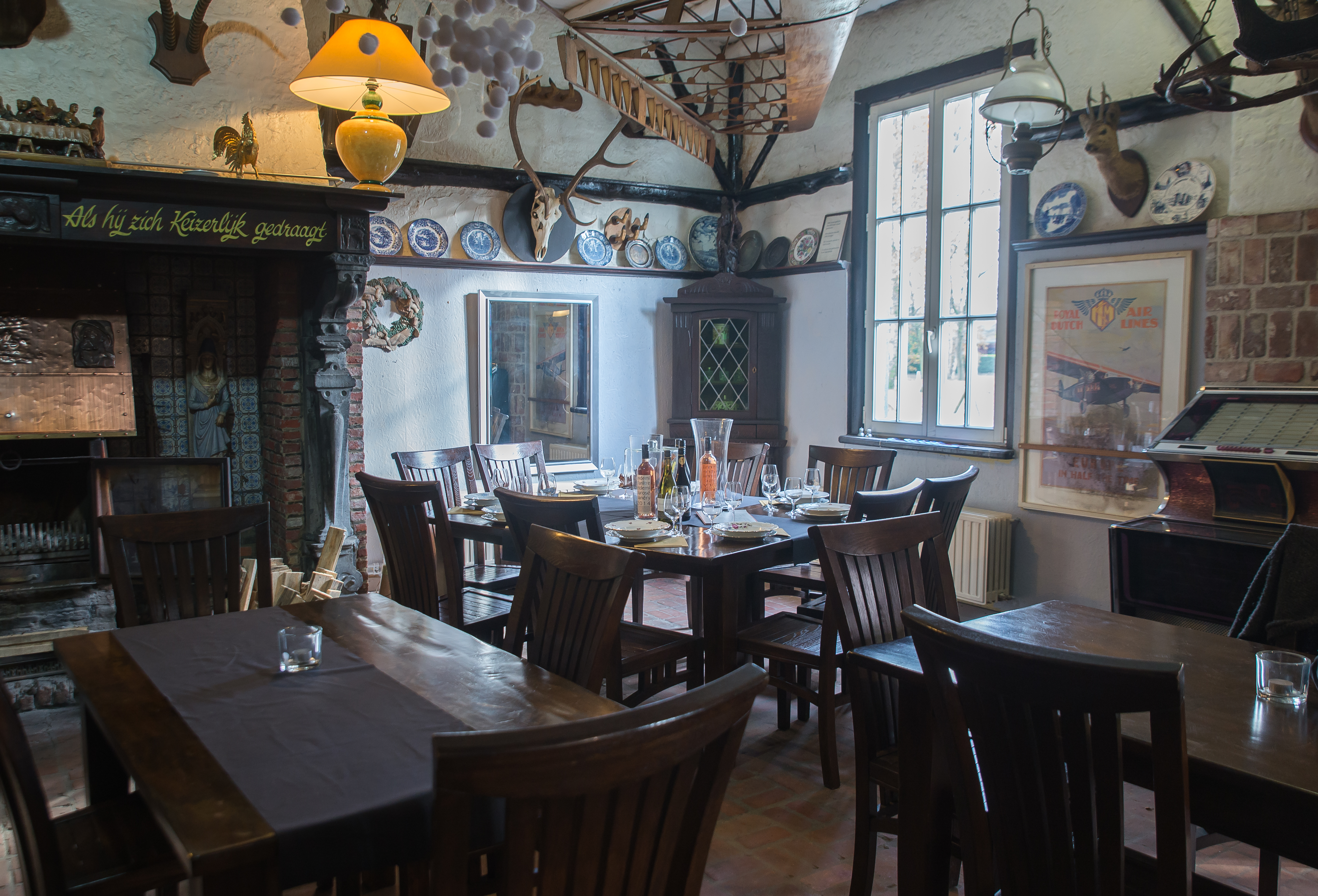 Origineel Interieur met 3 haardvuren.