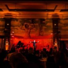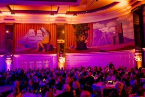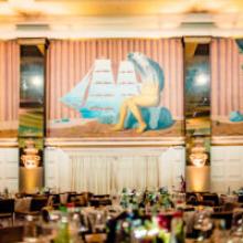 De zaal is versierd met handgeschilderde fresco’s van René Margritte, die refereren naar de bekende panoramische muurschildering “Het Betoverde Rijk” uit 1953. Wij zijn dan ook bijzonder fier dat we deze zaal ter beschikking kunnen stellen van onze gasten.