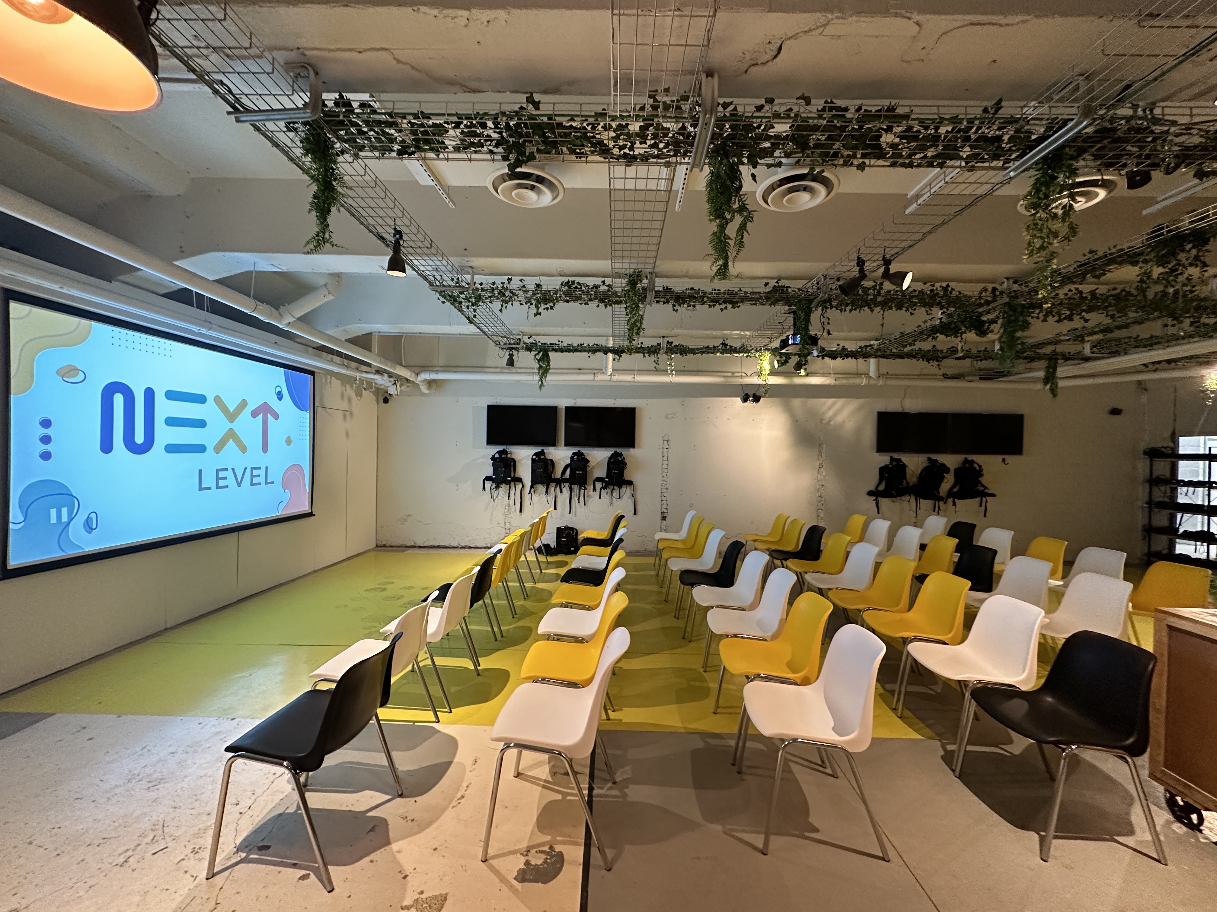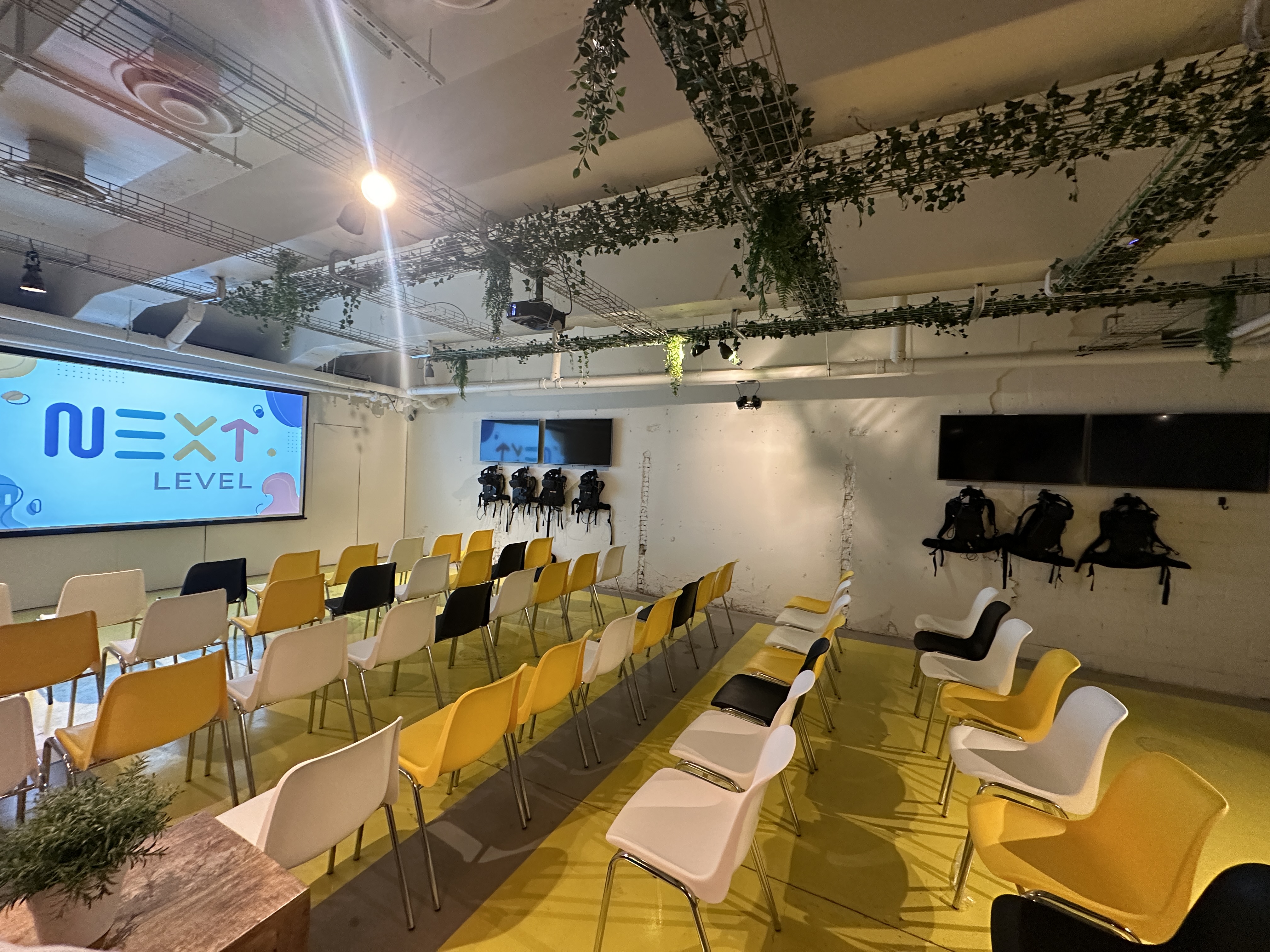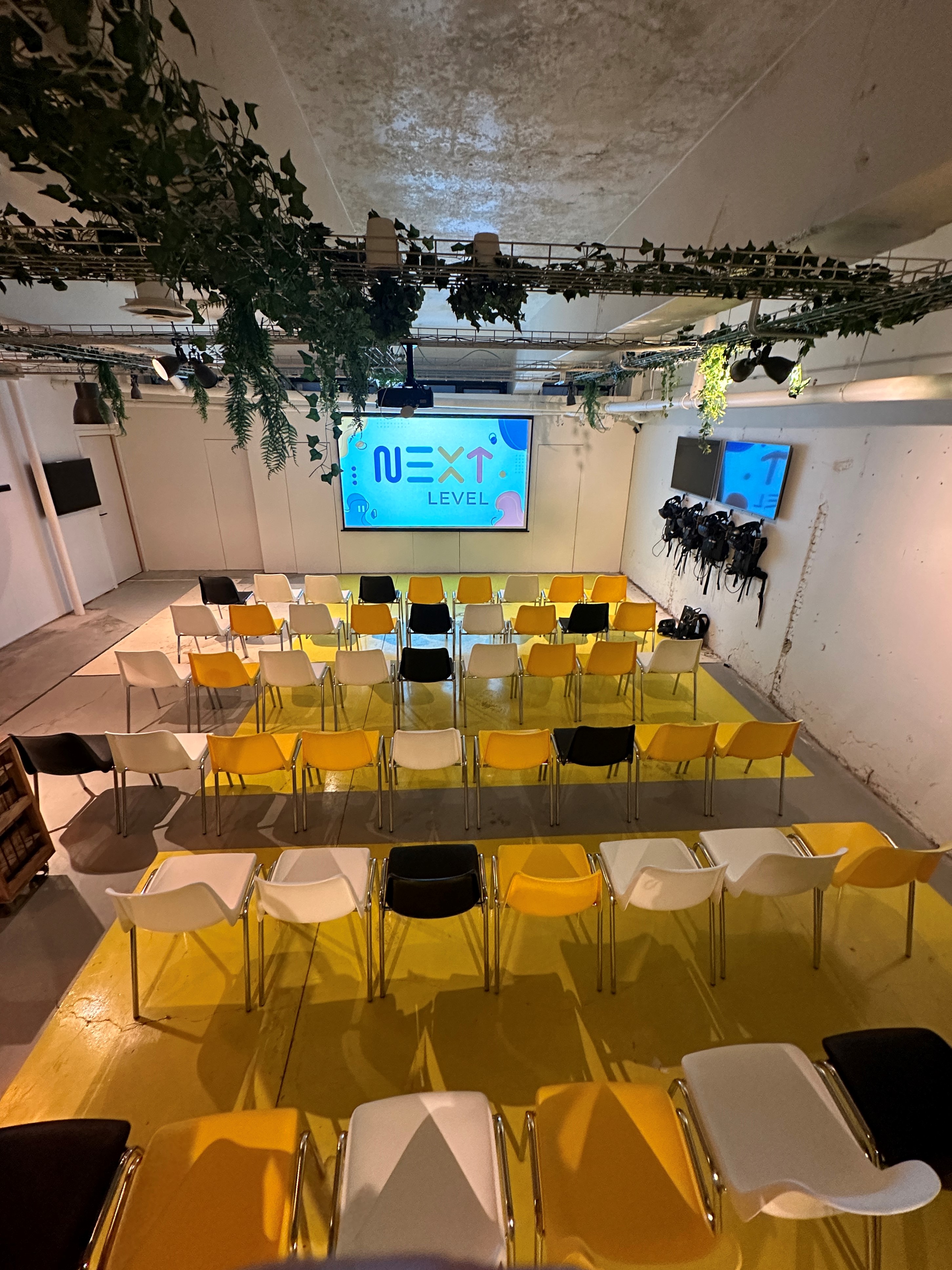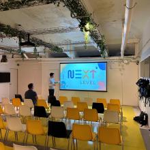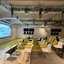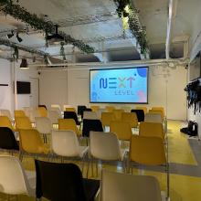 Next Level biedt een vergaderruimte aan van 12m x 8m, hier kunnen 10 tot 100 personen binnen. We beschikken over geluidsboxen, een beamer en een projectiescherm dat gratis te gebruiken zijn.
