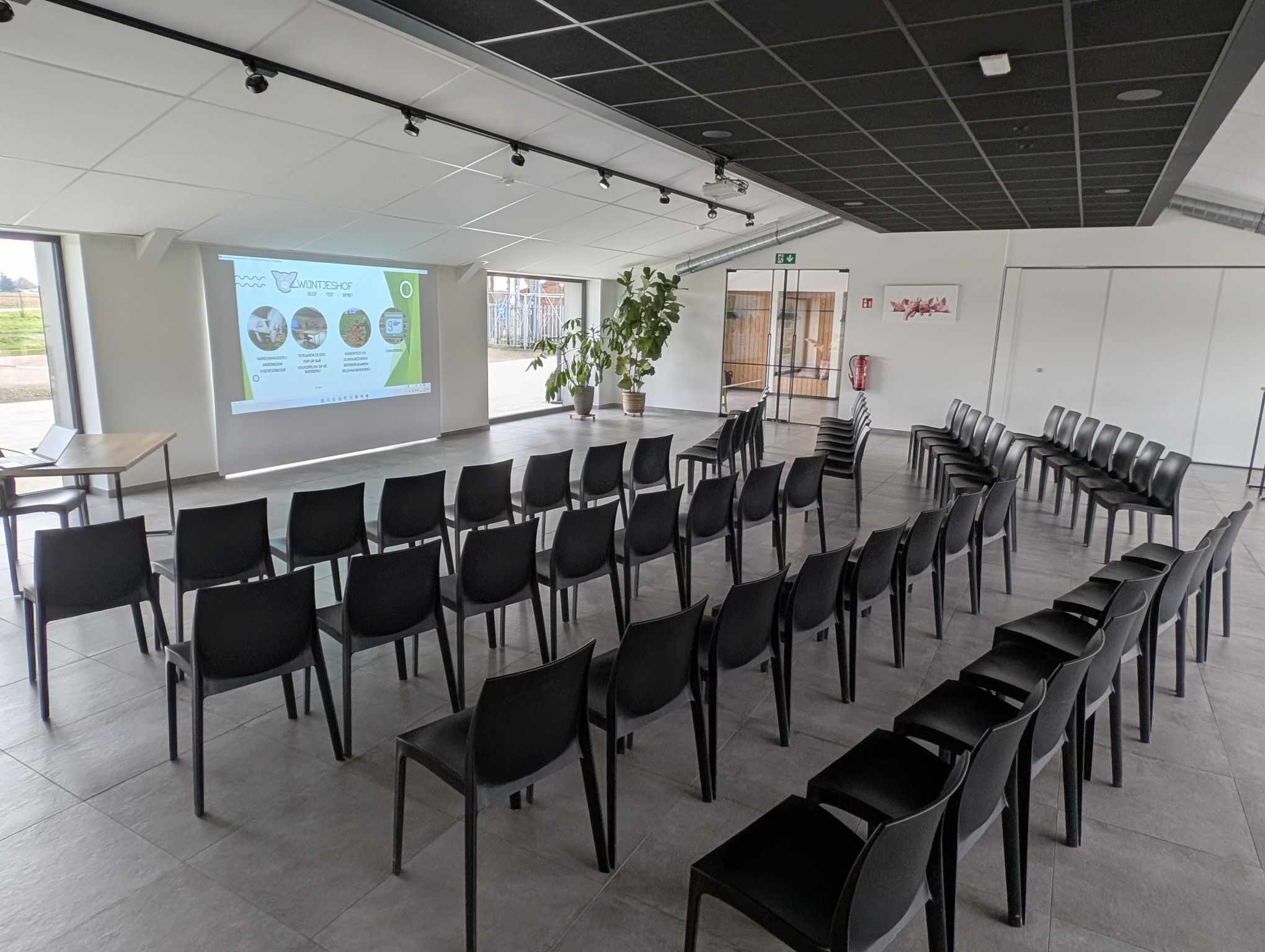 Welkom op het Zwijntjeshof – waar vergaderen een beleving wordt. Onze moderne vergaderzaal ligt midden in het groen, op een actieve boerderij met een grote tuin en weids uitzicht. De zaal is uitgerust met alle nodige materialen (wifi, beamer, scherm,..) en baadt in het daglicht – ideaal voor focus, creativiteit en mentaal welzijn.