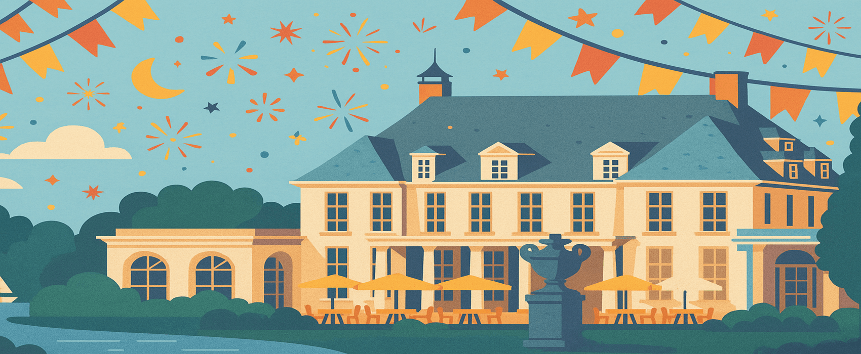 Binnenin vindt u vier authentieke feestzalen in Lodewijk XVI-stijl, elk met hun eigen uitstraling. De zalen zijn stijlvol ingericht en baden in natuurlijk licht, wat zorgt voor een warme, uitnodigende setting.